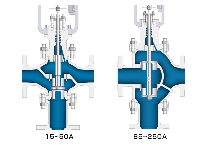 The other is aflow dividing three-way valve which divides fluid into two directions.