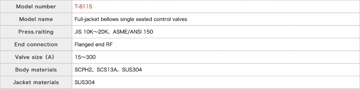 Control valve where a bellows is installed in the gland, and the valve body and the bellows case are covered with steam jackets.