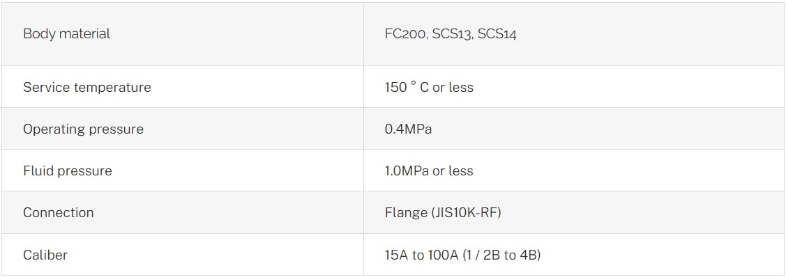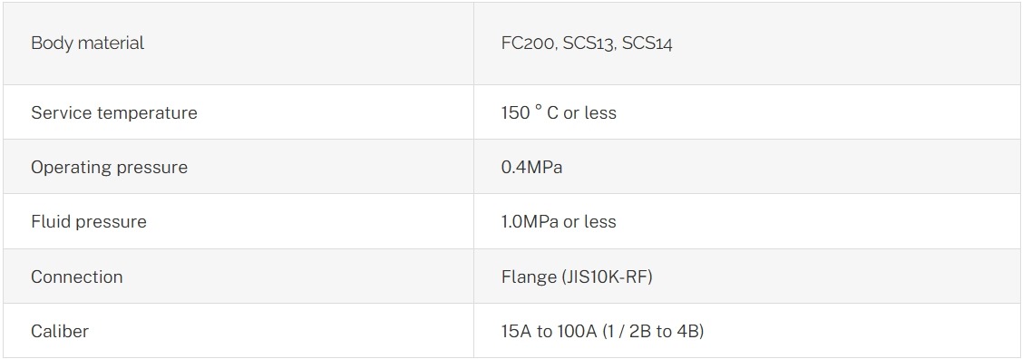 The operating pressure of the fluid is set to 1.0MPa (standard), and specifications can be made at a wide range of fluid pressures. (In addition, there is also a high pressure specification.)